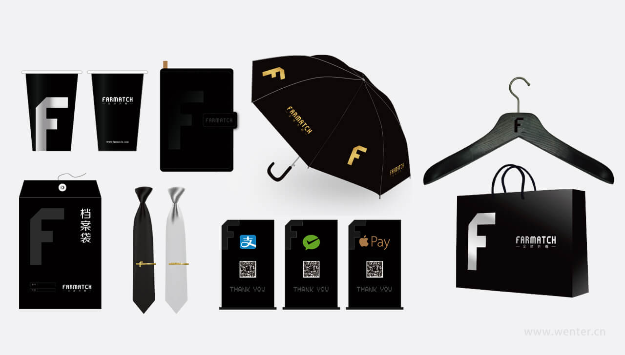 項(xiàng)目簡述:全球衣櫥FARMATCH連鎖品牌是基于橙堡科技旗下打造的一款奢侈品服裝集合店品牌,唯德設(shè)計(jì)參與了該品牌命名,商標(biāo)及VI體系等品牌視覺形象的工作,logo設(shè)計(jì)主要以字體形式為主,為品牌標(biāo)識打造了一款專注設(shè)計(jì)字體,并且定調(diào)黑色為主要色調(diào),以體現(xiàn)其品質(zhì)感;并系統(tǒng)做了一套VI視覺識別系統(tǒng)設(shè)計(jì),設(shè)計(jì)作品得到客戶方領(lǐng)導(dǎo)高度認(rèn)可;